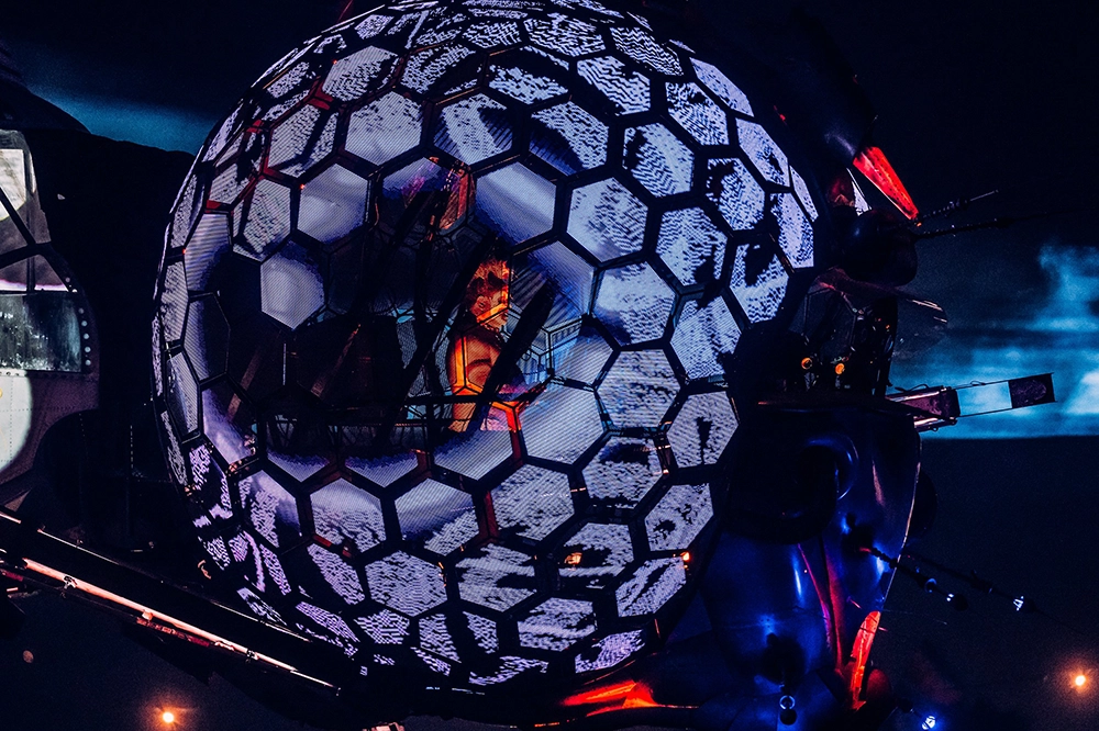 - функция Timecode связала воедино 10‑минутную программную последовательность, обеспечив воспроизведение предрендеренной анимации на LED‑«глазах» и всех проекционных поверхностях.