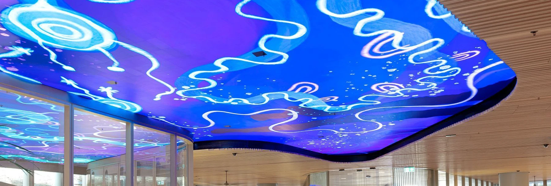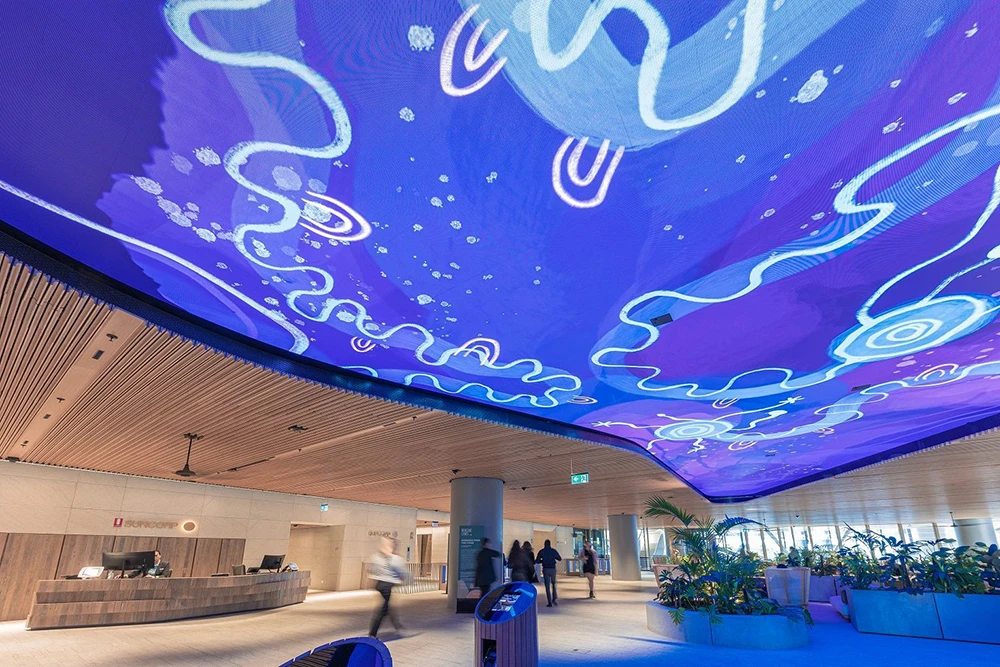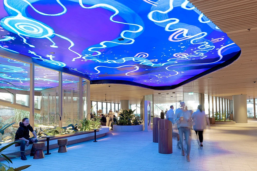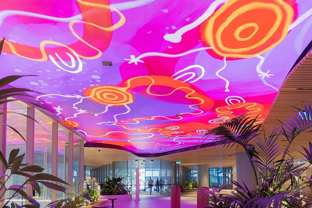 Искусство аборигенов заполнило цифровое небо в лобби небоскреба