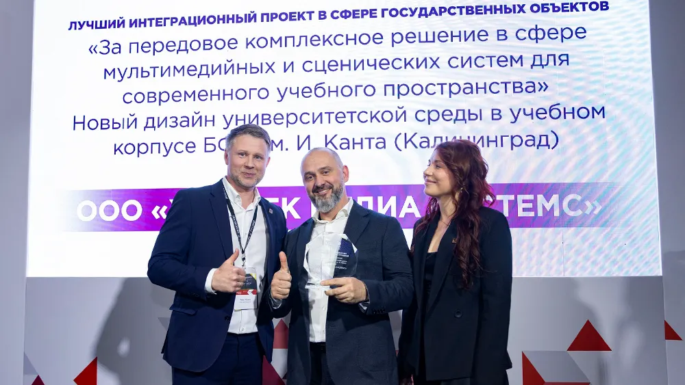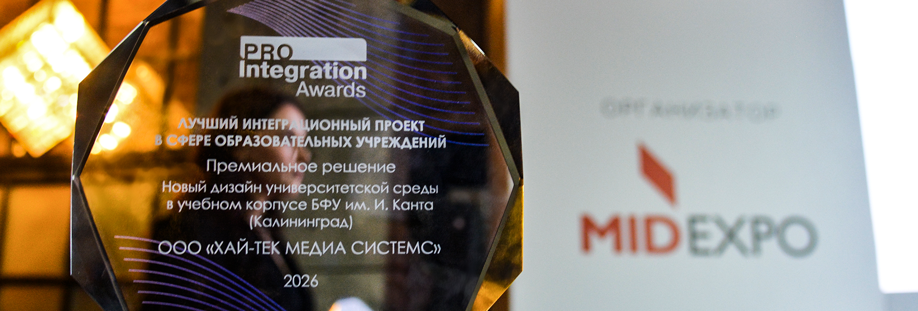 Системный интегратор «Хай-Тек Медиа Системс» стал победителем престижной премии Prointegration Awards 2026 в номинации «Лучший интеграционный проект в сфере образовательных учреждений». Награды удостоен проект комплексной модернизации учебного корпуса Балтийского федерального университета им. И. Канта в Калининграде. В рамках проекта было создано вдохновляющее пространство для учебы и творчества, внедрена гибкая и современная инфраструктура, рассчитанная на долгий срок службы. Генеральный партнер Prointegration Awards 2026 также отметил проект специальным призом.
