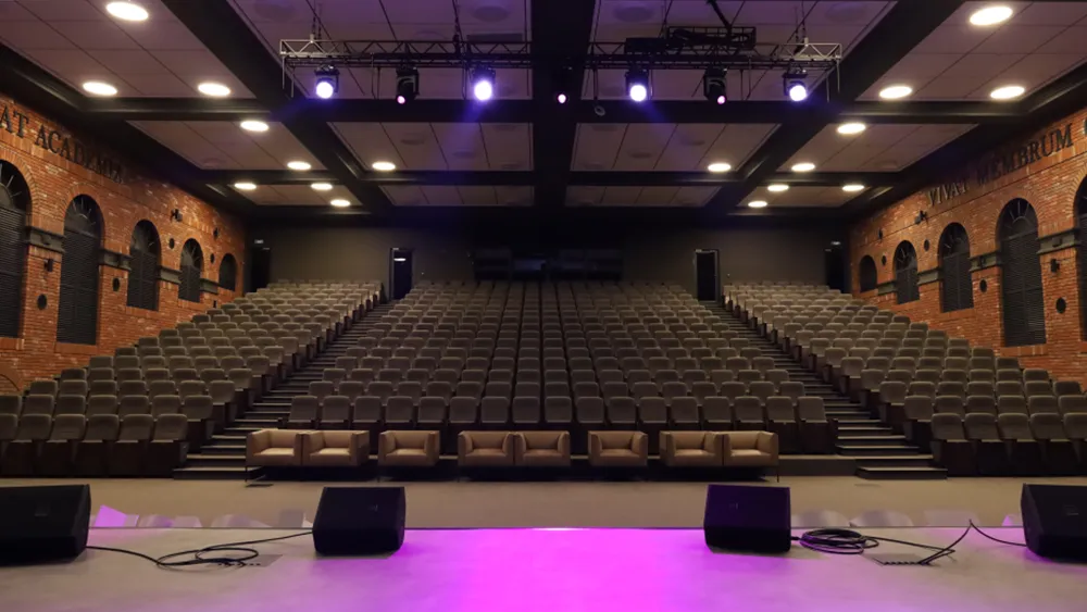 После обновления актовый зал «Максимум» стал универсальной площадкой для лекций, конференций, собраний, концертов и торжественных приемов. Здесь установили несущие сценические конструкции и верхнюю механику сцены, систему постановочного освещения с подъемно-опускными софитами, систему звукоусиления, оборудование для видеоконференций и онлайн-трансляций, а также гибкую систему коммутации для быстрого подключения различных источников сигнала.Учебная аудитория «Аквариум»